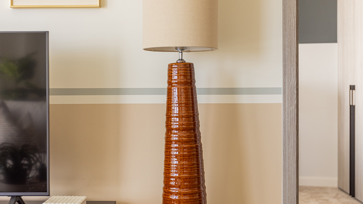 Making smart use of the layout, we placed a functional workstation just behind the sofa, keeping it in the same cohesive colour tones. For the dining nook, earthy-toned tableware with golden accents elevated everyday elegance.