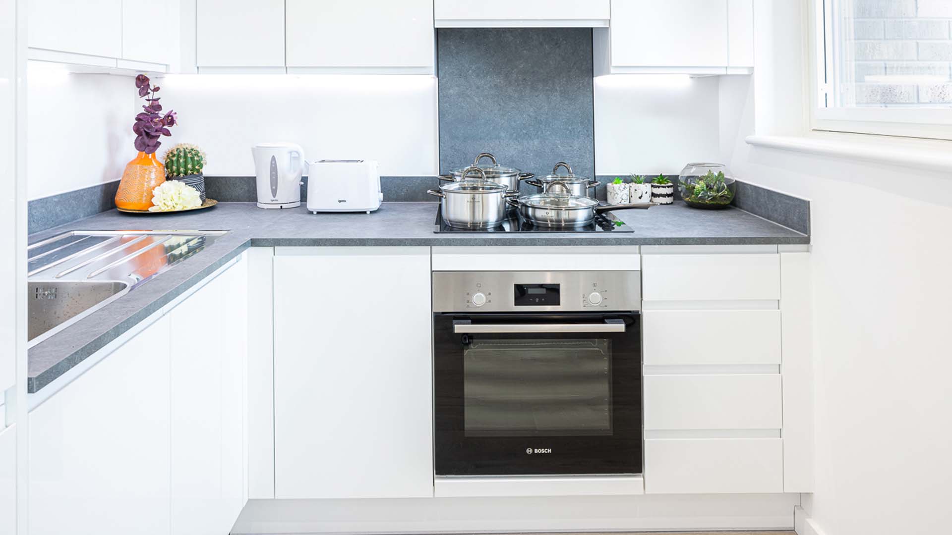 Maggie opted for our White Gold colour scheme to help the studio property look as bright and spacious as possible