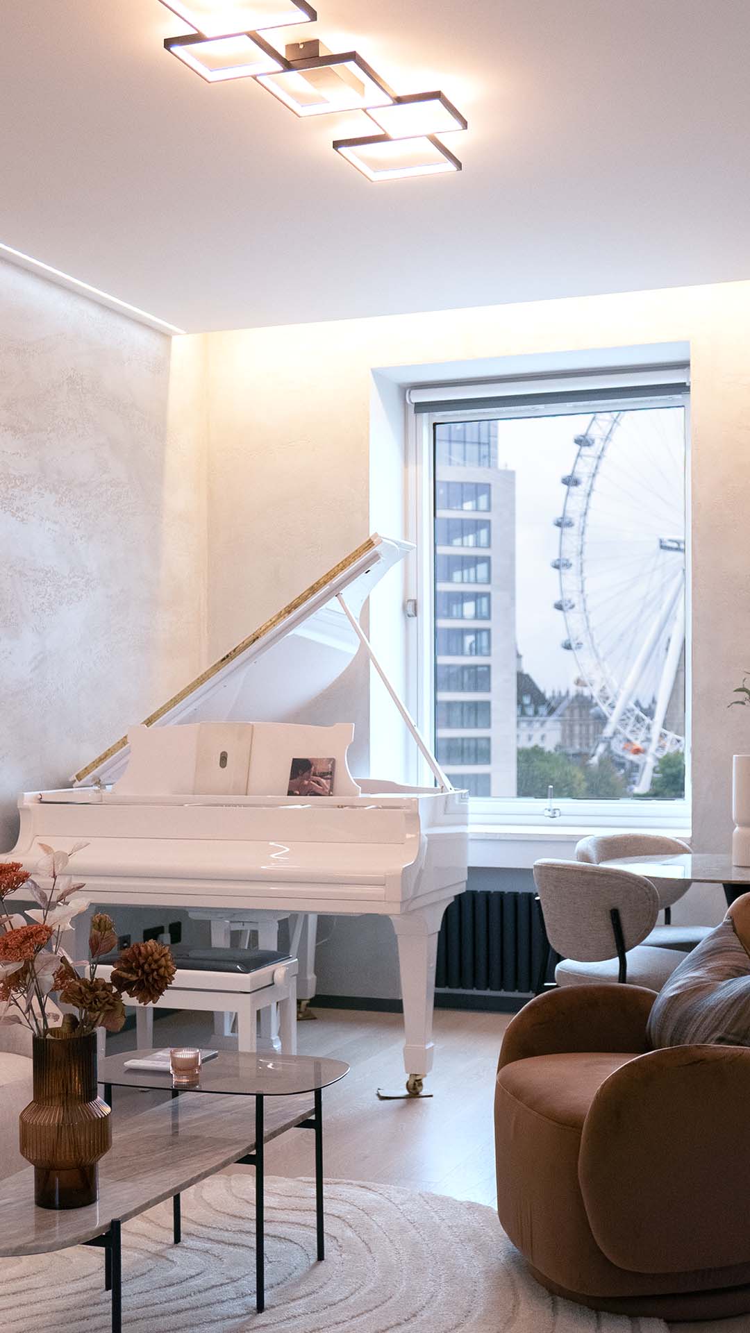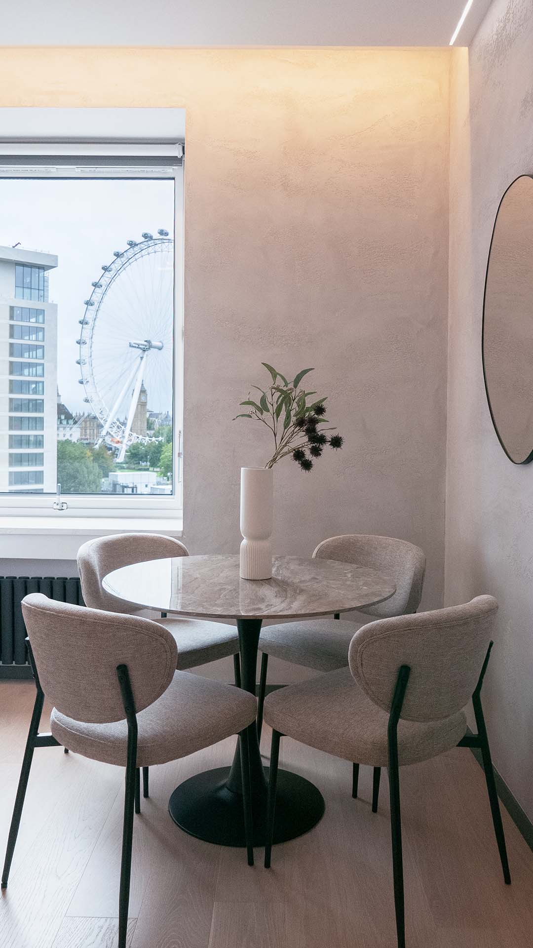 | Result Achieved: | Soft contemporary interiors with sculptural curves and a calm elegance, perfectly framed by views of the London Eye |