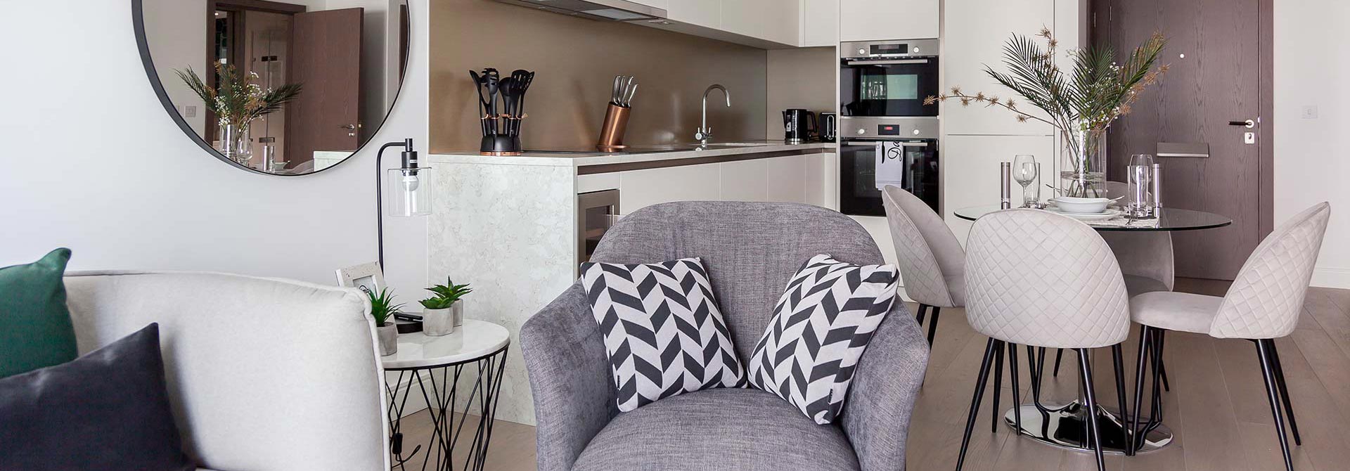 This large scale project included furnishing multiple flats with furniture packages to create contemporary spaces in the modern building.
