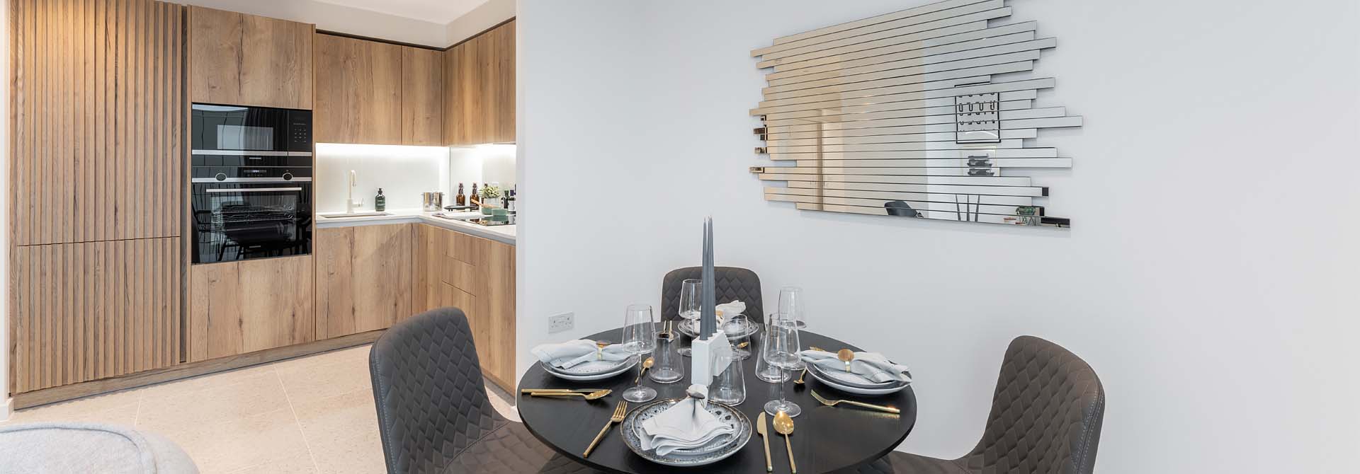 Bespoke elements such as art and tableware complete the furnishing solution to ensure the show home sold the specific lifestyle that prospective Silk District residents were looking for.