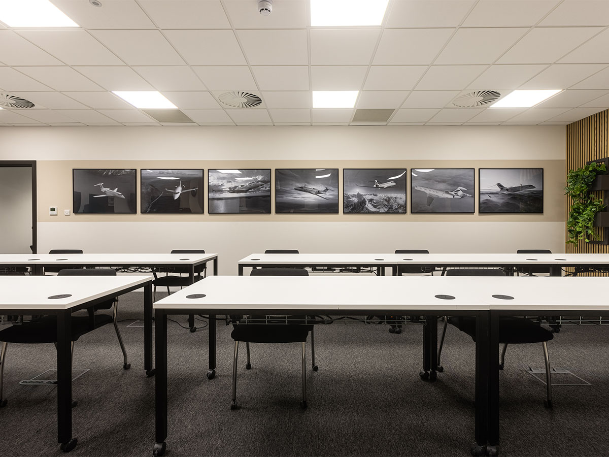 Completed before the Christmas break, the transformed training rooms offer a contemporary, energising atmosphere that resonates with Bombardier’s reimagined brand identity. The design elevates the learning environment for aircraft engineers, paving the way for future collaboration on additional projects—such as refurbishing a canteen and a third training room.