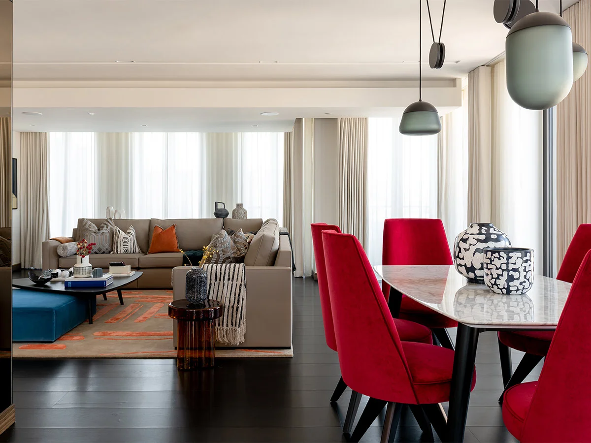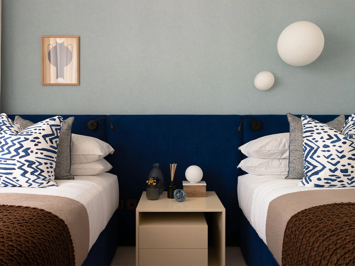 Lincoln Square by Lodha UK is a luxurious development in central London with stunning 360-degree views of the city skyline. Post its completion, the developer still had a few apartments to sell and thought of instructing us to help with that objective. With eight units to furnish and dress up during the challenging pandemic months, we had our tasks cut out. For a development that exudes design mastery from the exterior, the interiors needed to be equally imaginative to match its class. Among the many design palettes tested and deployed across the apartments, one client requested our services for a spacious three-bedroom unit measuring 1355 sq ft. After sampling a few mood boards shared by us, the client agreed to go ahead with our Japandi-inspired design theme.
